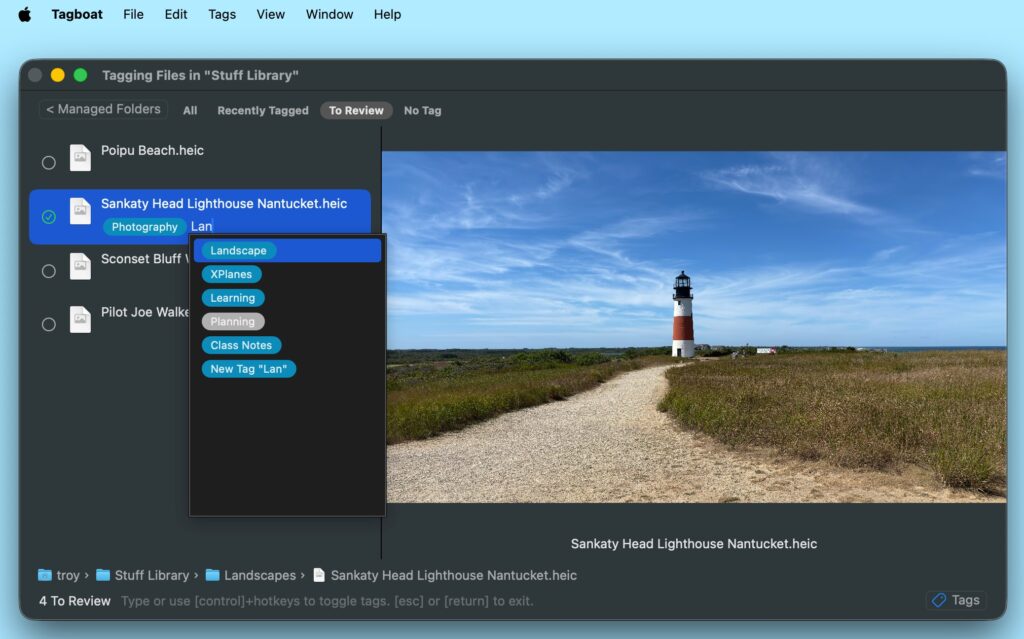 Tagboat makes your progress visible, and helps you keep chosen folders completely tagged and well organized — making it fast, easy, and rewarding to keep a consistent discipline of tagging your files. It helps you cultivate an intentional tag vocabulary that suits your own file collections and workflow, while making the files you care about easy to find when you need them.